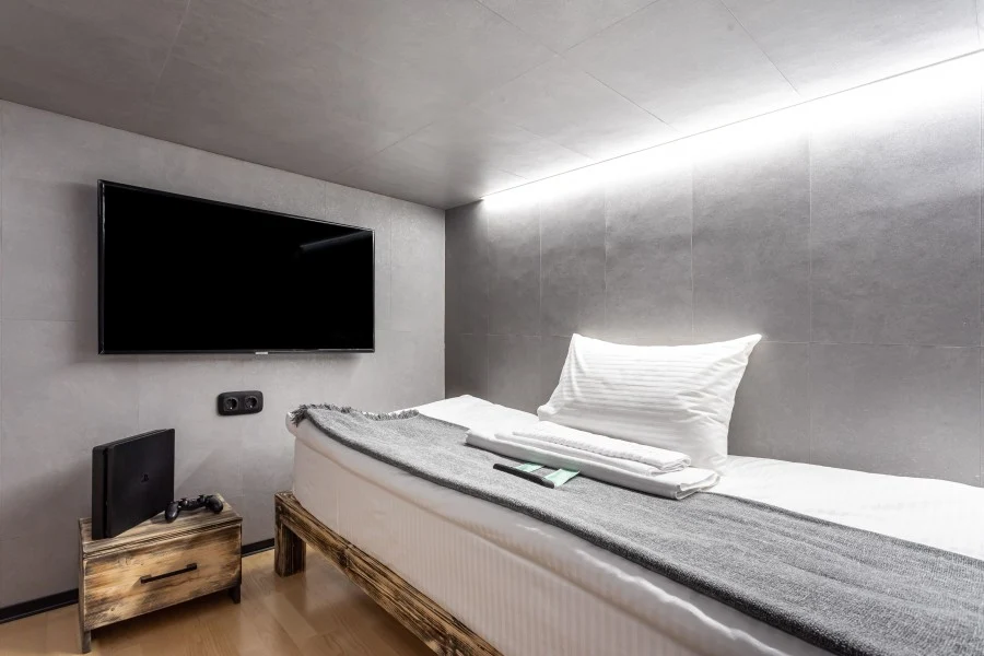 Одноместная нижняя капсула категории Big King с увеличенными размерами и PS4. Данная категория без вида из капсулы. Внутри капсулы комфортная односпальная кровать с ортопедическим матрасом, небольшой шкаф для одежды, банные принадлежности, smart TV и розетки. Высота потолка в капсуле 150см. Наличие капсулы на определенные даты можно узнать в нашем модуле бронирования или по телефону.